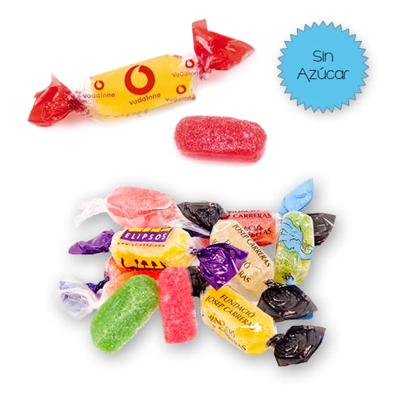 Caramelos Pectina 2 lazos Sin Azúcar Personalizados. Los caramelos son una valla publicitaria que se expande fácilmente entre nuestros clientes habituales y una eficaz fórmula para fidelizar y promocionar entre nuevos clientes potenciales.