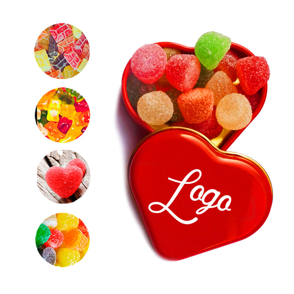 Las Latas Metálicas Personalizadas con forma de corazón rellenas de caramelos o chuches, son un artículo promocional que podrá personalizar con su Logotipo o el diseño que usted necesite y hacer publicidad de un forma sencilla, cercana y sobre todo que dejará un buen sabor de boca en los paladares de todos. Publicidad sin hacer daño a sus bolsillos.